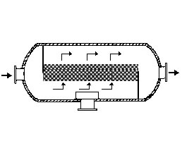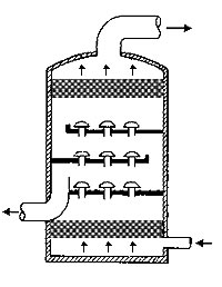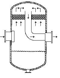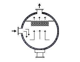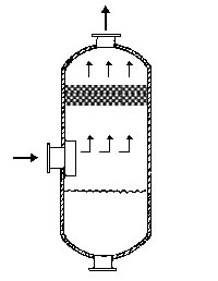 在通常的化工操作中所碰到的氣體中分散液滴的直徑約在0.1~5000μm。一般粒徑在100μm以上的顆粒因沉降速度較快,其分離問題很容易解決。通常直徑大于50μm的液滴,可用重力沉降法分離;5μm以上的液滴可用慣性碰撞及離心分離法;對(duì)于更小的細(xì)霧則要設(shè)法使其聚集形成較大顆粒,或用纖維過濾器及靜電除霧器。絲網(wǎng)除沫器,其主要用于分離直徑大于3μm~5μm的液滴,工作原理如右圖所示。當(dāng)帶有霧沫的氣體以一定的速度上升,通過架在格柵上的金屬絲網(wǎng)時(shí),由于霧沫上升的慣性作用,使得霧沫與細(xì)絲碰撞而粘附在細(xì)絲的表面上。細(xì)絲表面上的霧沫進(jìn)一步擴(kuò)散及霧沫本身的重力沉降,使霧沫形成較大的液滴沿著細(xì)絲流至它的交織處。由于細(xì)絲的可濕性、液體的表面張力及細(xì)絲的毛細(xì)管作用,使得液滴越來越大,直至其自身的重力超過氣體上升的浮力和液體表面張力的合力時(shí),就被分離而下落,流至容器的下游設(shè)備中。只要操作氣速等條件選擇得當(dāng),氣體通過絲網(wǎng)除沫器后,其除沫效率可達(dá)到97%以上,可以達(dá)到完全去除霧沫的目的。絲網(wǎng)除沫器(除霧器)用于分離塔中氣體夾帶的液滴,以保證有傳質(zhì)效率,降低有價(jià)值的物料損失和改善塔后壓縮機(jī)的操作,一般多在塔頂設(shè)置絲網(wǎng)除沫器?捎行コ3--5um的霧滴,塔盤間若設(shè)置除沫器,不僅可保證塔盤的傳質(zhì)效率,還可以減小板間距。所以絲網(wǎng)除沫器主要用于氣液分離。亦可為空氣過濾器用于氣體分離。此外,除沫器絲網(wǎng)還可作為儀表工業(yè)中各類儀表的緩沖器,以防止電波干擾的電子屏蔽器等。在化工工藝過程中,各種氣液相接觸設(shè)備的氣體離開設(shè)備時(shí)往往夾帶著不少液滴,如塔類設(shè)備、蒸發(fā)器等。一般要求把氣體中夾帶的液滴分離出來,以免影響氣體的品質(zhì)或下道工序的操作。從氣體分離液滴或霧沫的機(jī)理有重力下降、慣性碰撞、離心分離、布朗運(yùn)動(dòng)的擴(kuò)散沉積和靜電吸引。絲網(wǎng)除沫器是屬于慣性碰撞除沫中的典型產(chǎn)品,是一種高效的氣液分離設(shè)備。它具有除沫效率高、結(jié)構(gòu)簡單、空隙率大、壓力降小、重量輕,安裝、操作、維修方便等特點(diǎn)。當(dāng)氣體自下而上通過絲網(wǎng)除沫器時(shí),由于慣性作用與絲網(wǎng)表面碰撞,霧沫隨即在細(xì)絲表面聚集而擴(kuò)張,不斷變大的液滴由于重量產(chǎn)生的重力超過氣速和液體表面的張力的合力時(shí),液滴就下落。工業(yè)上常用于塔器、蒸發(fā)器和分離器等。